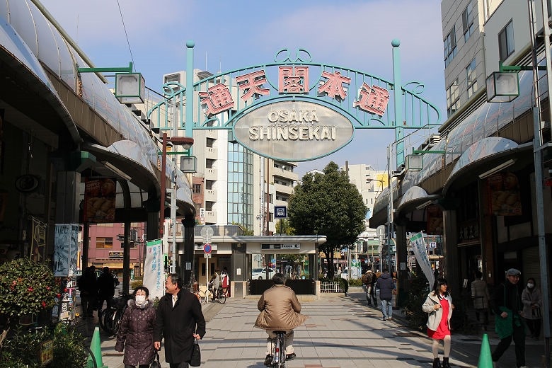 出了地鐵站,路邊一樣做得很明顯,通天閣直走吧!