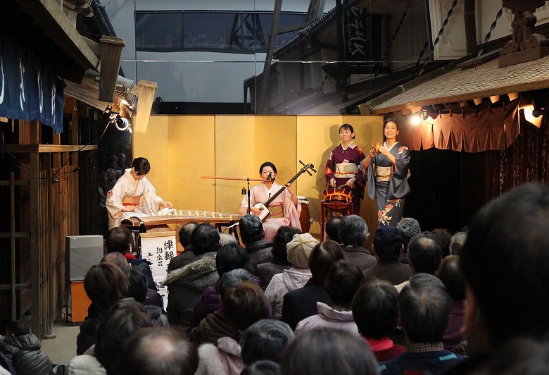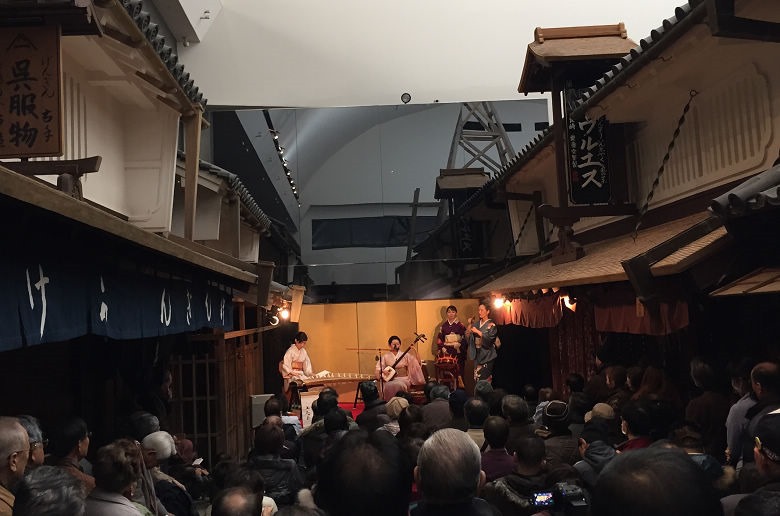 ▲ 狹窄的街道上,正好有傳統音樂表演。中央有座位區,客滿時就站著欣賞。