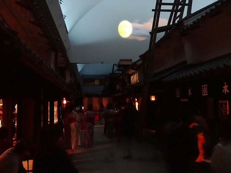 ▲ 展場裡面,隨時間會不斷地變換燈光,像這時候是晚上,月亮高高掛。