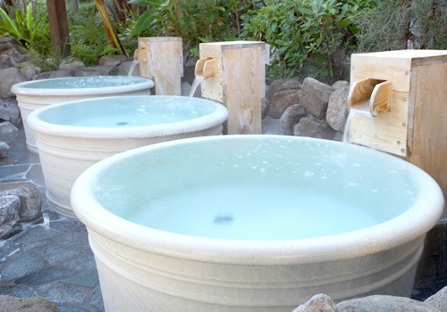 ( 節錄自官網 ) ▲ 露天的部分,泡一般的池子都沒問題。只是哥哥一直想去試試右邊這種白色的水桶。