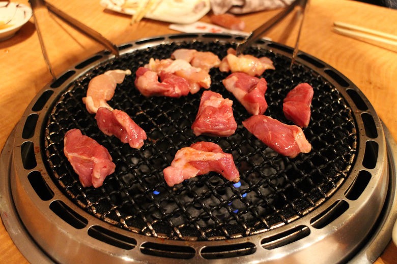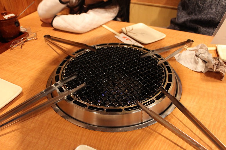點完餐之後,服務人員先幫我們熱鍋,這種烤網的鐵絲比較粗,上面似乎有不少積碳。