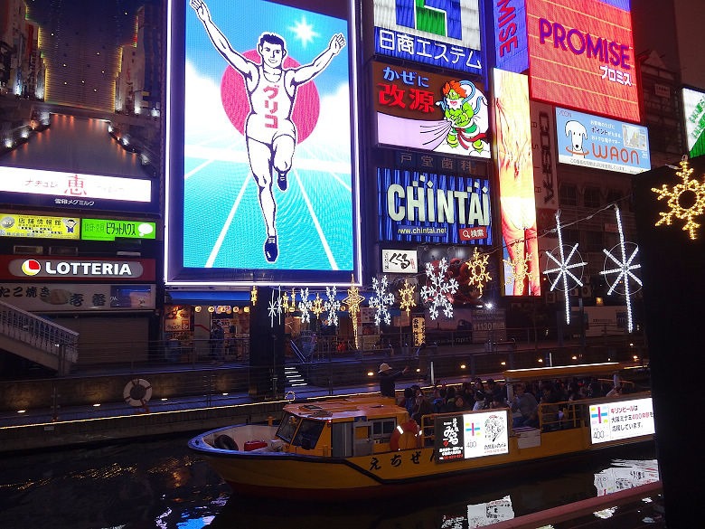 ▲ 道頓崛觀光船搭乘地點,就在驚安唐吉軻德的前面,剛好最後一班乘客下船 ( 約21:30 )