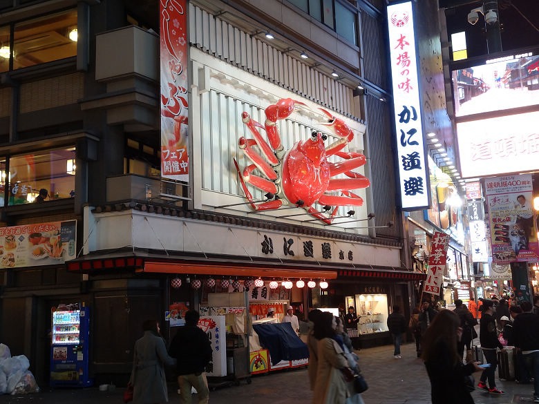 ▲ 沿路上,不知是錯覺還是真的有很多家,螃蟹道樂的招牌非常顯眼,這隻大螃蟹還會動呢!