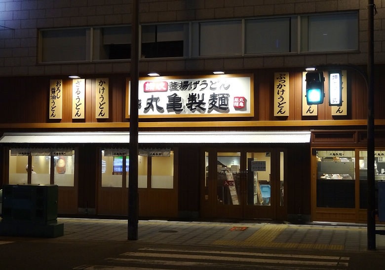 ▲ 好不容易終於走回到熟悉的街道,看到這家丸龜製麵,我們的旅館就在前面不遠了。