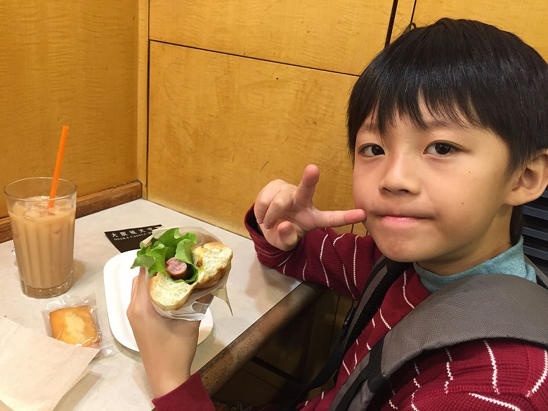 休息吃個點心,爸爸去東橫INN取行李之後,再來會合。孩子們可以坐下暫歇,節省一些時間。
