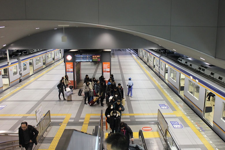 急行電車來到關西機場站,我們只能用緊急慌張來形容,迫不及待地往前衝,趕不上飛機嗎?NO
