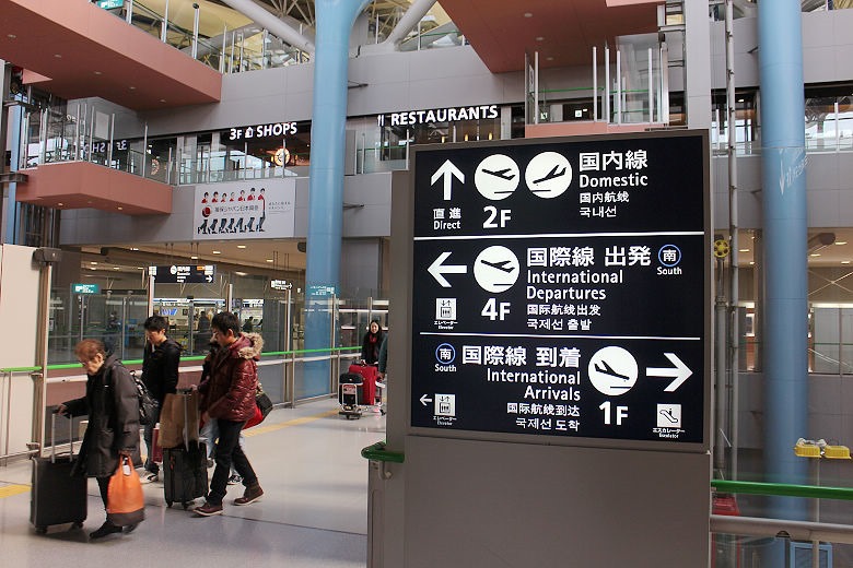 從電車大樓走空橋過來航站大廈,發現自己身處航站的二樓。國內線往前直走,同在二樓。