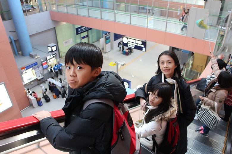 我們要搭機回家,國際線在四樓,搭手扶梯上樓吧。