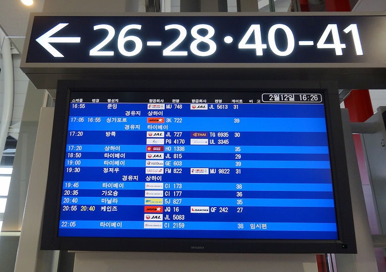飛往台北的捷星航空,在39號登機門,17:05起飛。畫面正好跳到韓語。