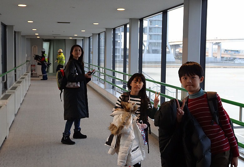 飛來大阪時,妹妹坐窗邊,那時候已經講好輪流,所以回程時換哥哥坐窗邊。