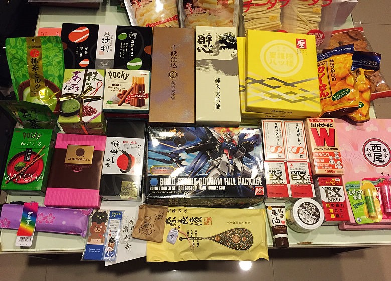 戰利品總覽,有點罪惡感 大多是零食、八橋麻糬、幫爸媽買的藥品、兩瓶大吟釀、