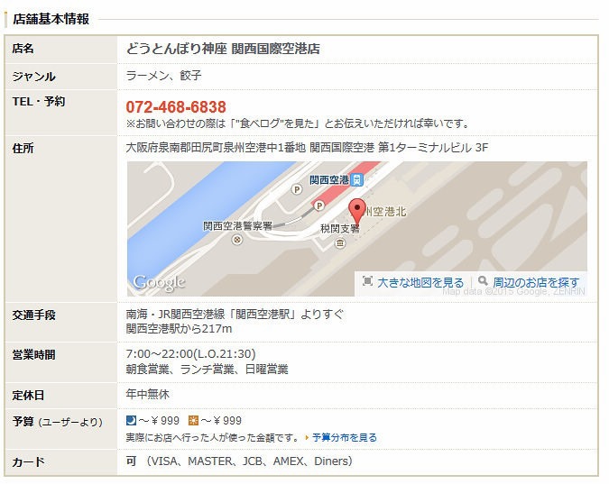 3. どうとんぼり神座 関西国際空港店 評分:3.40