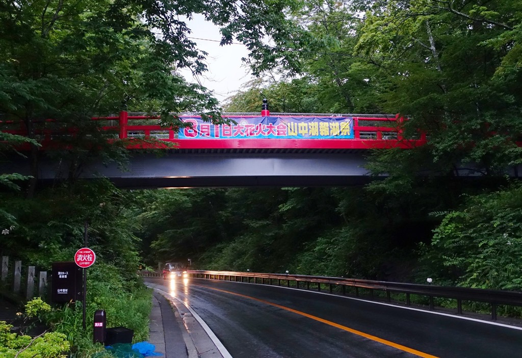▲ 繼續往山中湖畔的方向走,一點點毛毛雨,不撐傘也沒關係的程度。