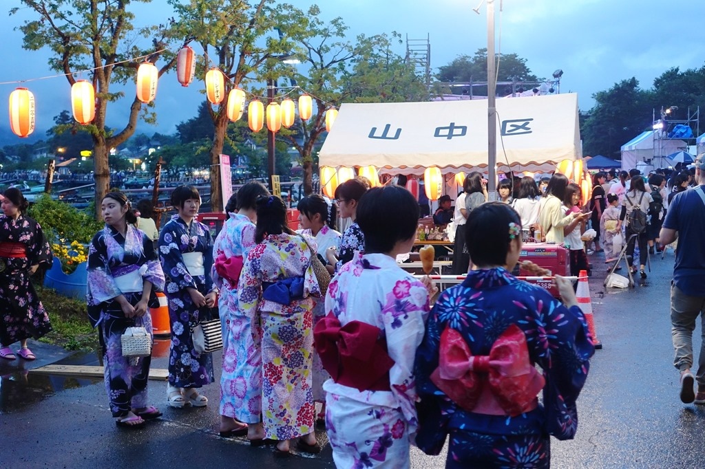 ▲ 夜幕低垂,華燈初上。山中湖畔正上演一年一度的熱鬧夏祭--山中湖報湖祭。