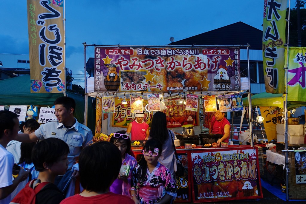 ▲ 正在傷腦筋時,走到太鼓表演的會場,剛好有空位可以坐。坐下邊吃邊看表演,一舉兩得。