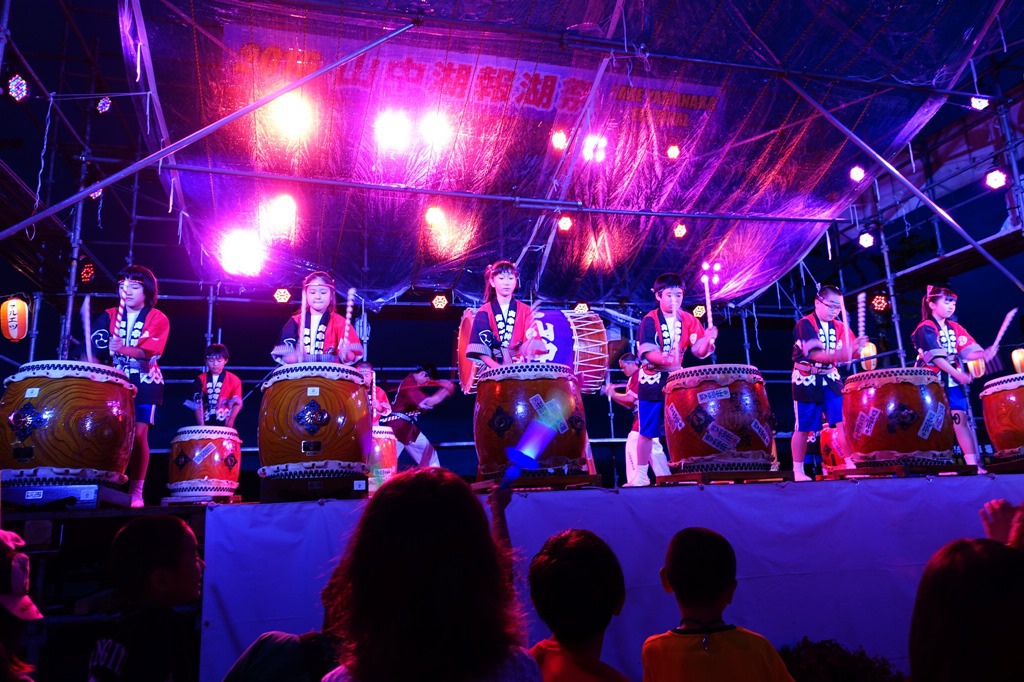▲ 太鼓分好幾組,成人與兒童分開,也有混合演出。專業又賣力的精采表演,看得目不轉睛。