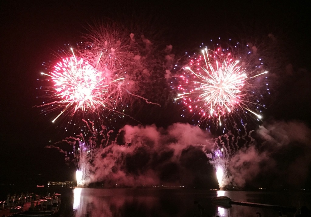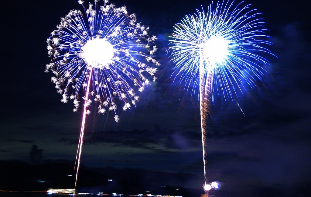 ▲ 表演告一段落,花火緊接著登場,湖邊開始施放花火。報湖祭花火大會比較特別之處是,施放