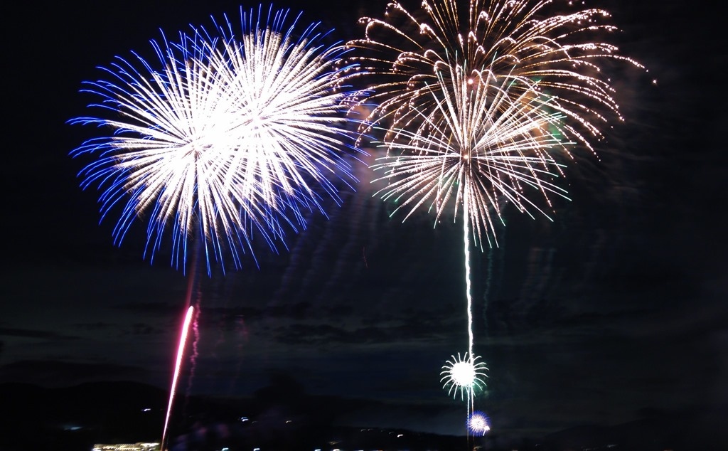 ▲ 報湖祭的花火,是以雙組合的施放方式,一次兩組,部分有搭配音樂,有時候沒有。
