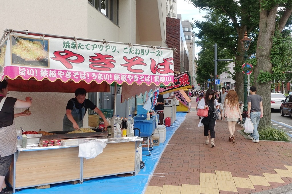 ▲ 路上可見舉辦花火而出現的攤販,觀察的結果再次應證,剛剛的LAWSON最便宜,因距離最遠。