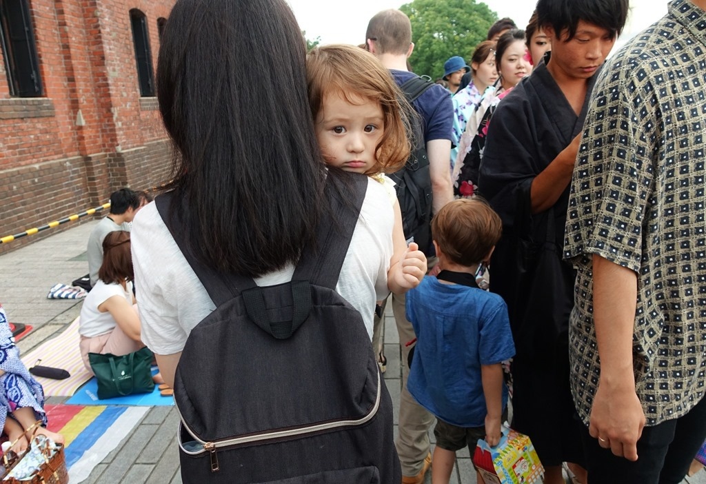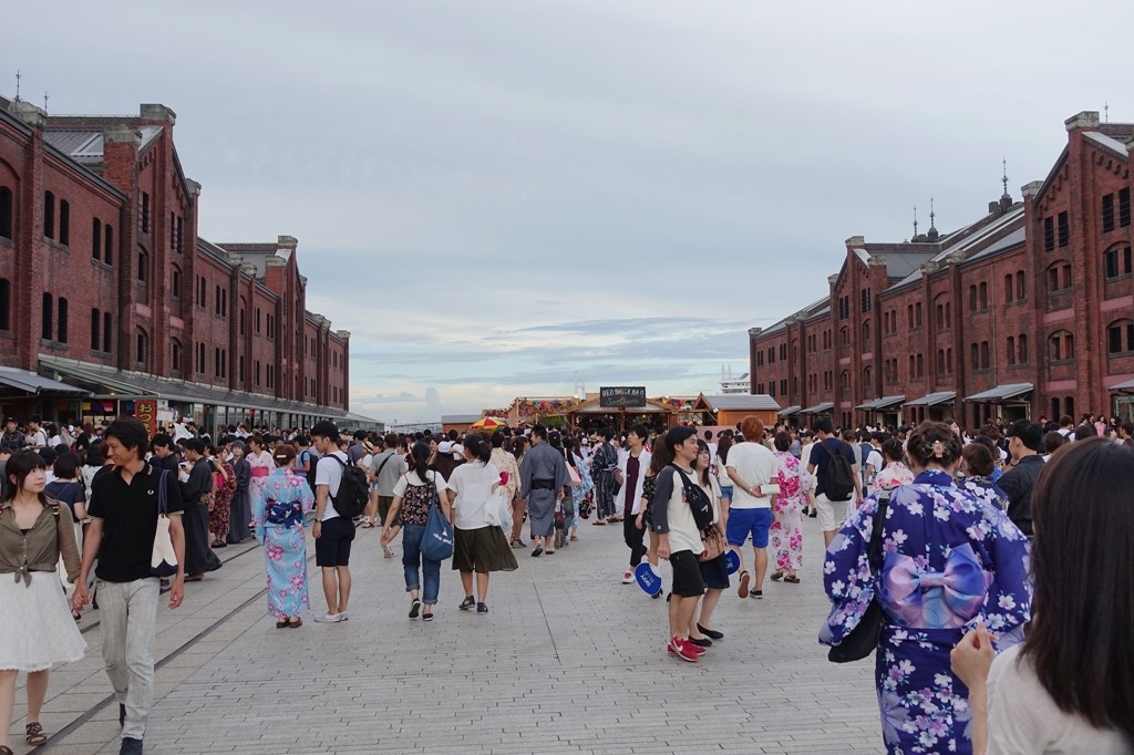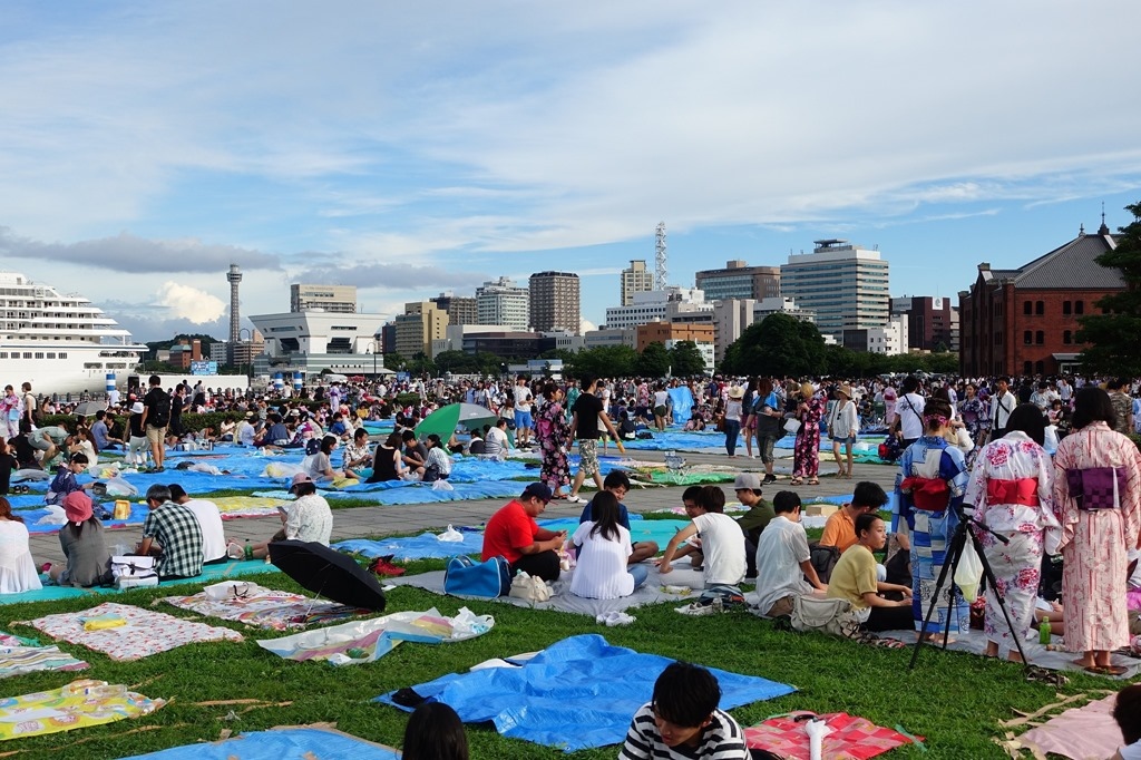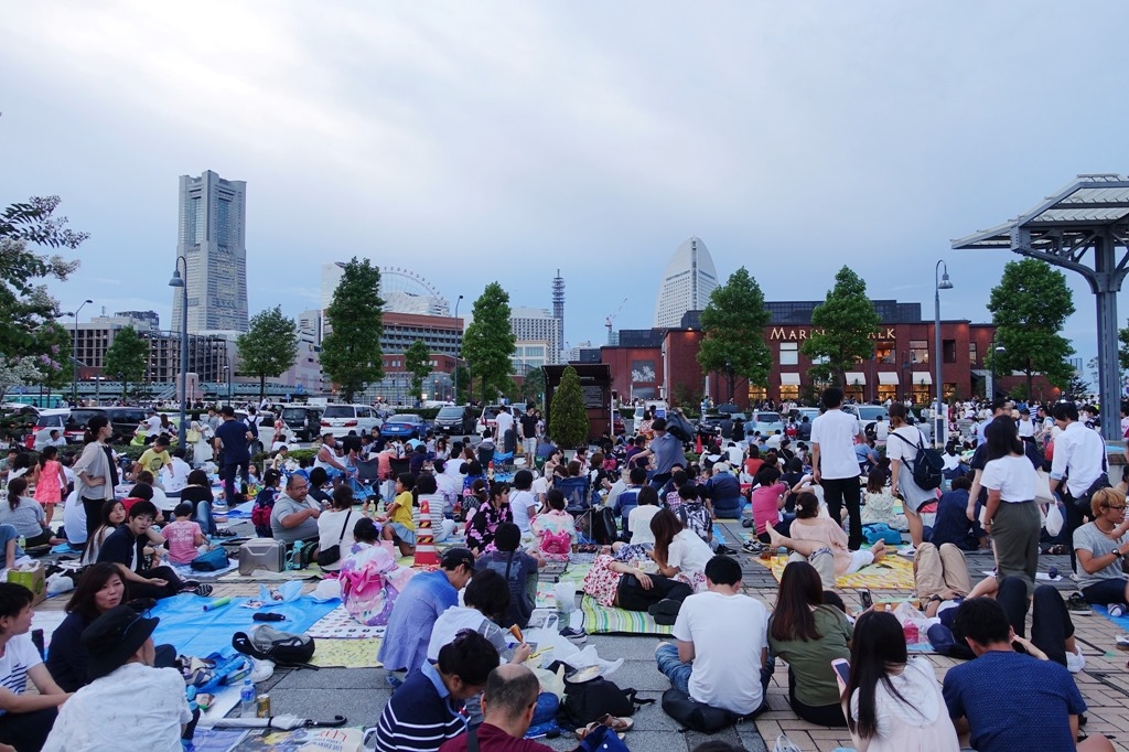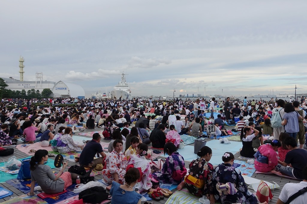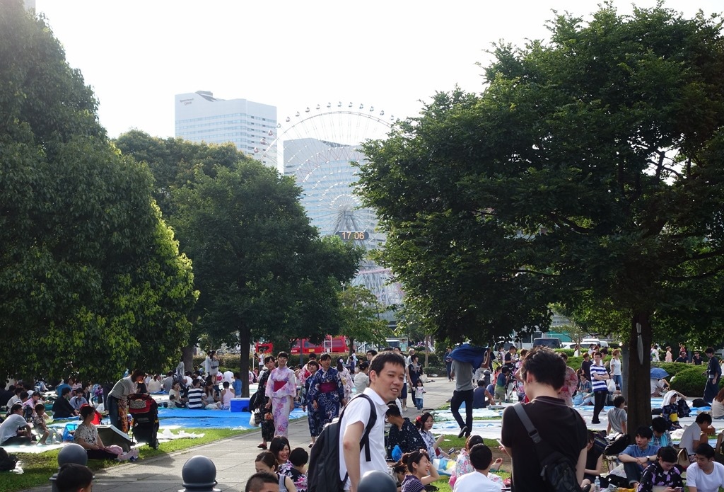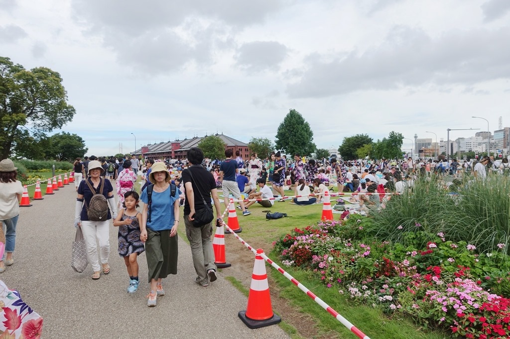 ▲ 幸好早上沒花太多時間在山中湖,提早回到橫濱。時間還很充裕,慢慢地往花火會場的方向走。