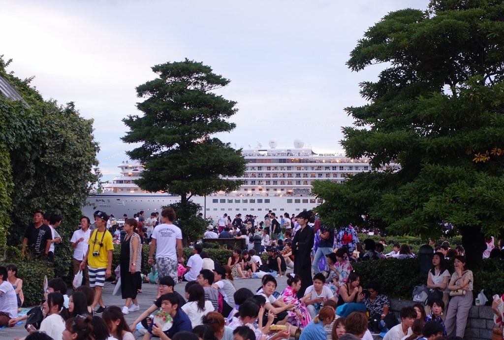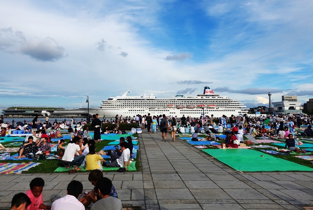 ▲ 橫濱港邊停靠的郵輪,晚間乘客正好可以就近欣賞花火,有額外免費的娛樂節目。