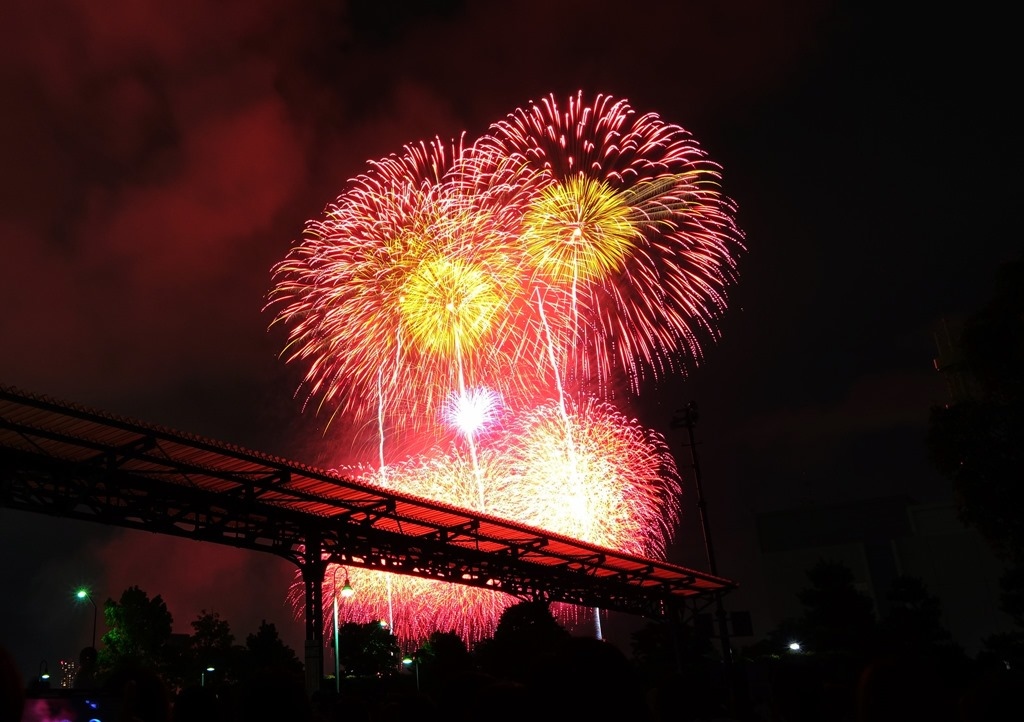 ▲ 不愧是神奈川縣規模最大的花火,到後面花火變化越來越多,火力也越來越強大。
