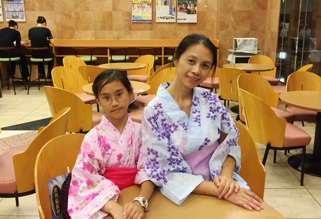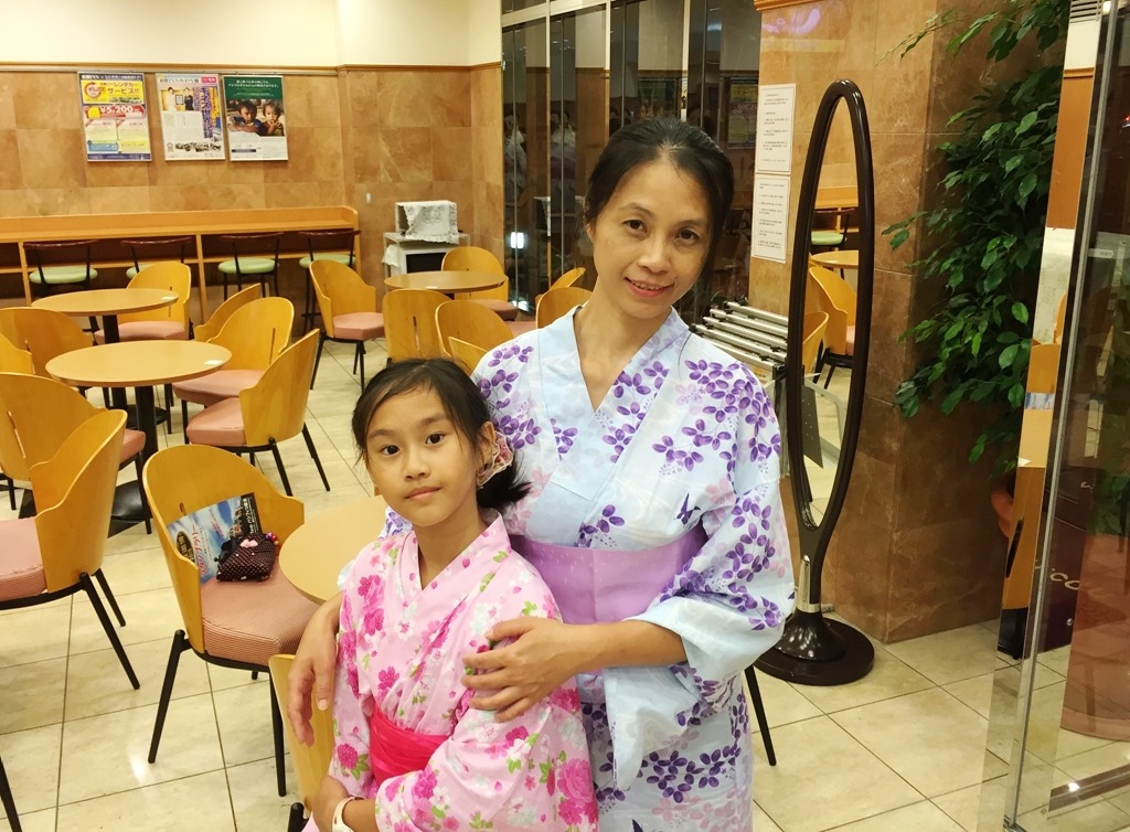 ▲ 一樓大廳沒什麼人,正好拍一下媽咪與張小妹的浴衣照,紀念當下的美麗。
