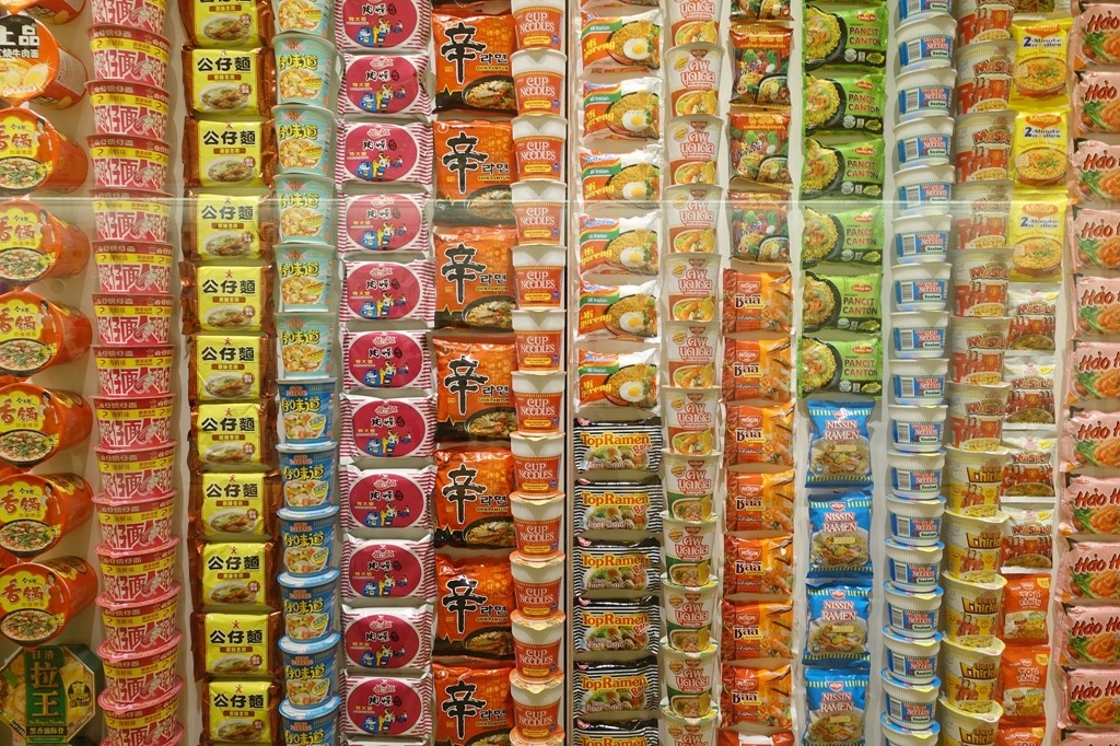 ▲ 放大一點來看。世界各國的遊客來參觀,看到熟悉的泡麵產品,多少會產生一些親切感吧!