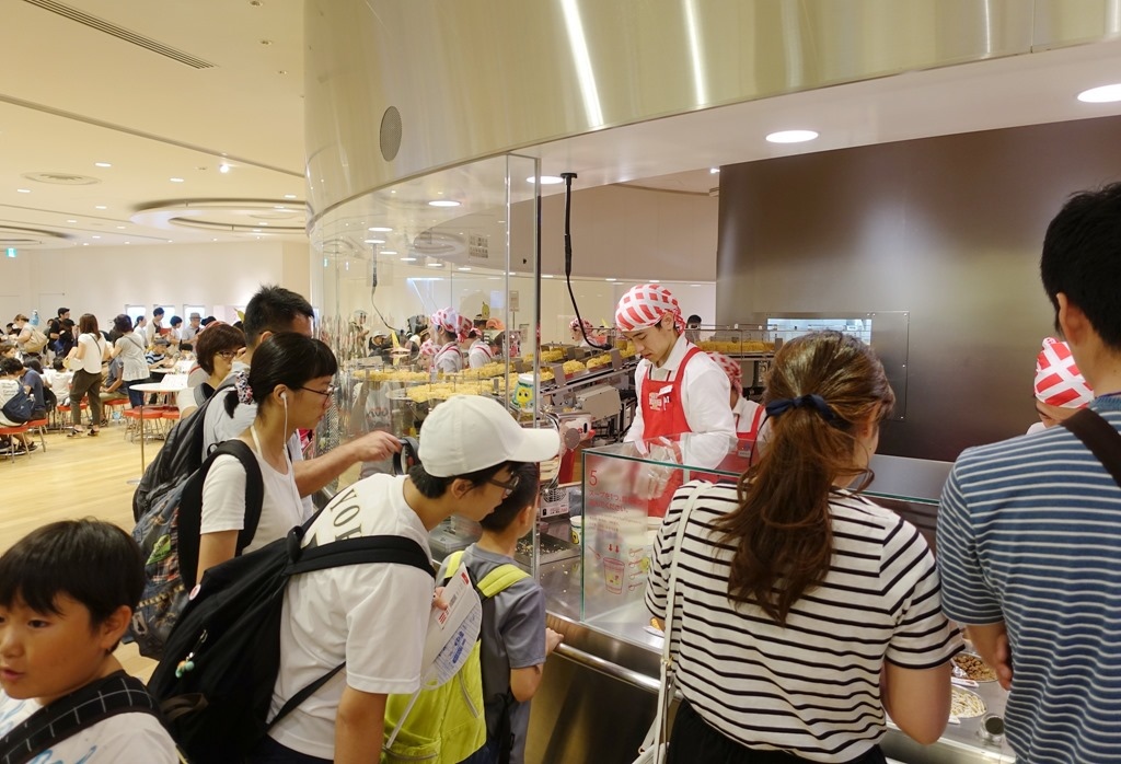 ▲ 個人杯麵的創作完成之後,來這邊排隊,準備下一步驟:填裝麵條。有很多受付窗口不用擔心。