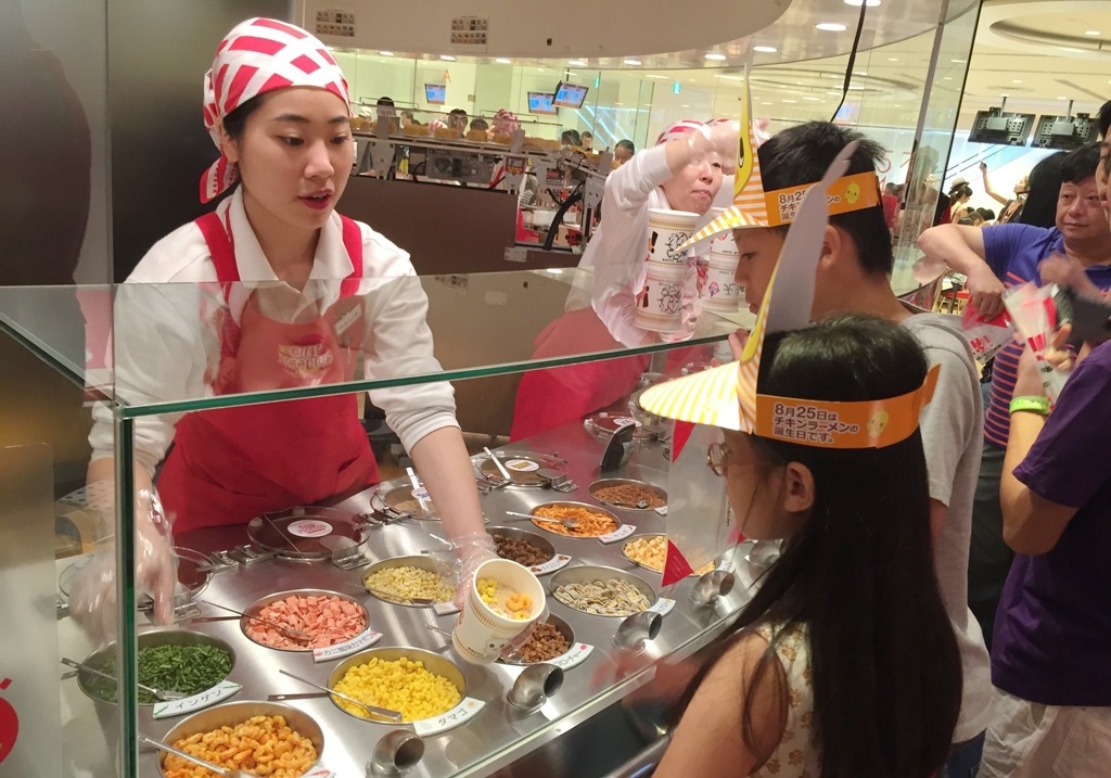▲ 一邊排隊一邊購買杯麵碗。不知不覺中,又掏出錢來了,剛剛小孩免費,過來這邊絕對花錢。
