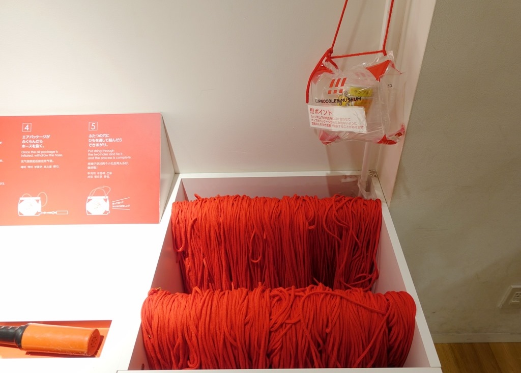 ▲ 最後一關自己DIY,一個塑膠袋和一條繩子。塑膠袋打氣之後會將杯麵緊緊包住,不怕擠壓碰撞。