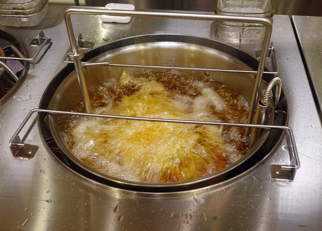 ▲ 油鍋高溫比較危險,由工作人員幫忙處理這一步驟。