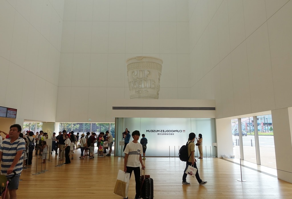 ▲ 一樓售票大廳,挑高的天花板空間很樸素,只有一個大型無塗色的白色杯麵,感覺是留白的藝術。