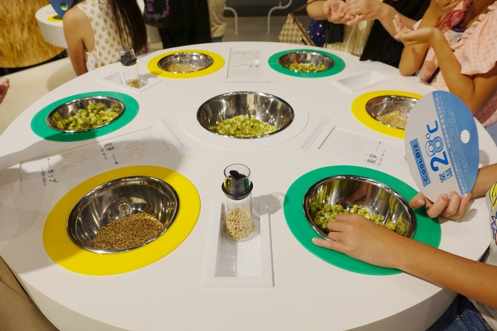 ▲ 介紹釀造啤酒的原料芽,還有綠色的啤酒花可以加強啤酒的風味(苦味)。