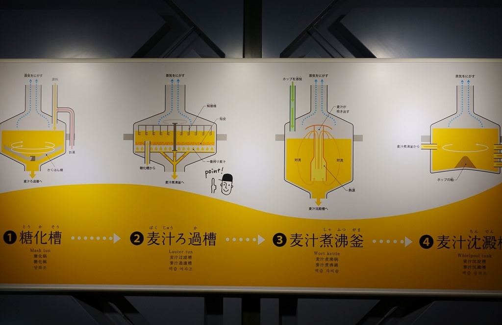 ▲ 剛才那幾個不鏽鋼大桶子的用途,講解在這邊,分別是糖化鍋、過濾槽、煮沸鍋、沉澱槽。