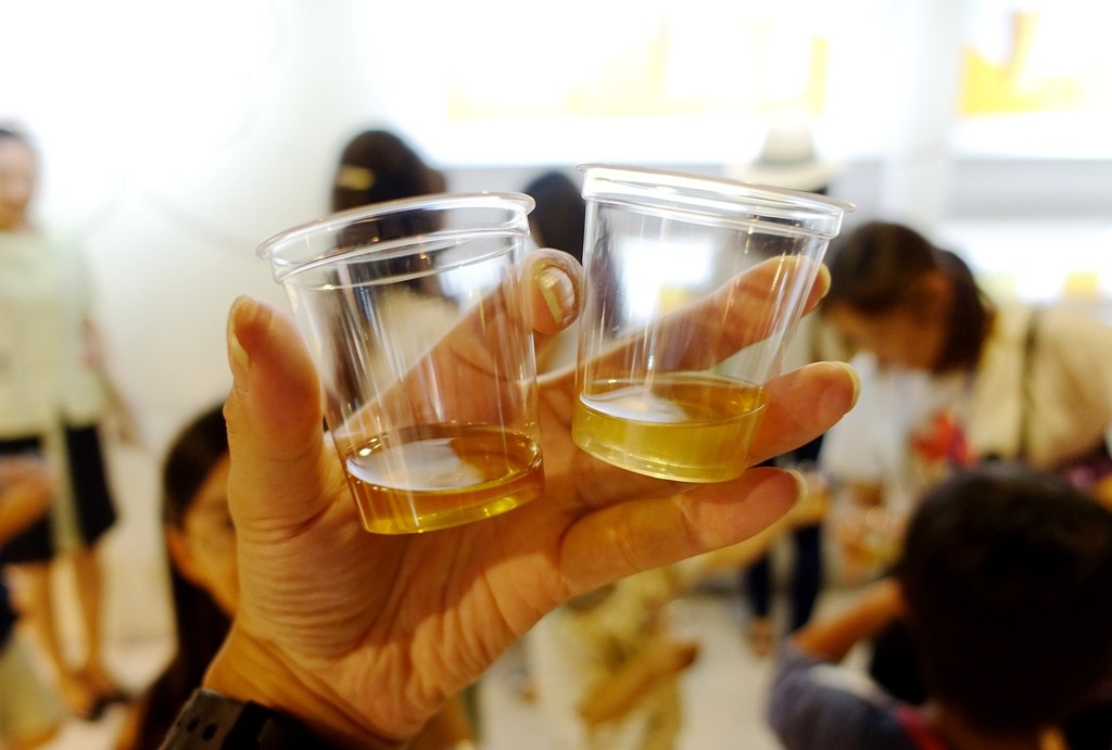 ▲ 試喝麥汁,與啤酒很不相同,味道微甘,充滿麥香,口感很順口。