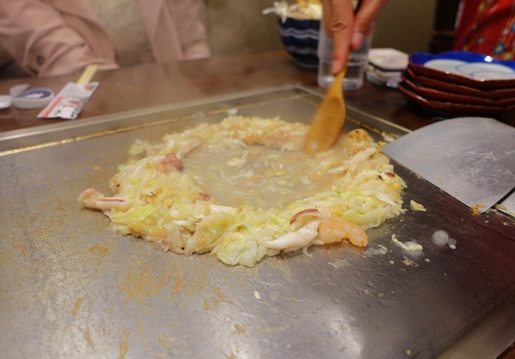 ▲ 海鮮文字燒的食材上桌囉,接下來....,還是請服務人員大展身手就好。